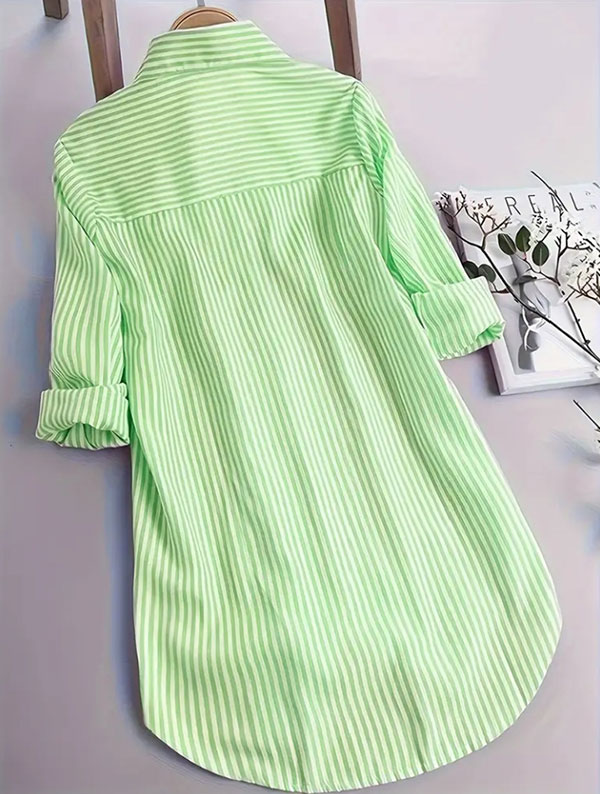Blusa mujer verde a rayas manga corta